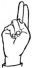 На ћирилици написано КАТАРИНА АРСИКИН састоји се из 15 слова [?]. Исписано ћириличном једноручном азбуком за глувонеме: